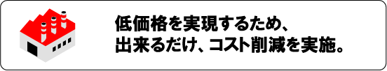 低価格を実現するため、出来るだけ、コスト削減を実施しています。