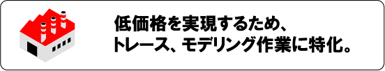 設計要素を含まない2次元CADのトレース、3次元CADのモデリング作業に特化しておりますので、価格を抑えています。