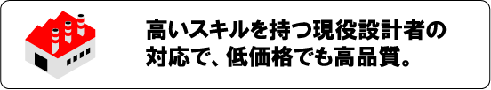 高度な設計スキルをもった設計者が、お客様のご対応、オペレーターの指示を行いますので、低価格ですが高品質を保っております。